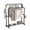 Suport dublu pentru umerase, cu raft pentru incaltaminte, negru, 155x42x98cm